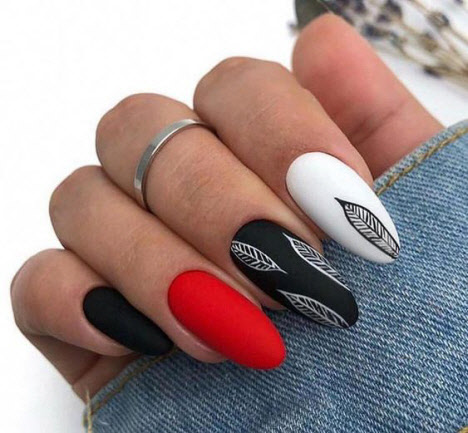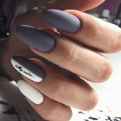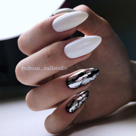 Bevorzugen Sie in dieser Saison die Mandelform der Nägel, diese Form sieht sehr raffiniert und stilvoll aus. Das Design der Nägel in Mandelform sieht sowohl in dunklen als auch in hellen Tönen wunderschön aus, hell und pastell, mit Glitzern, Steinen und Folie, mit Reiben und Aufklebern.