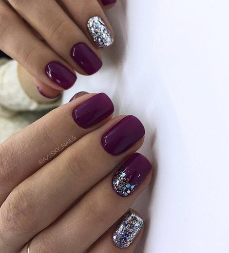 Pailletten können die gesamte Oberfläche von einem oder zwei Nägeln bedecken oder Sie können sich von der Nagelhaut oder dem Nagelrand aus erstrecken.
