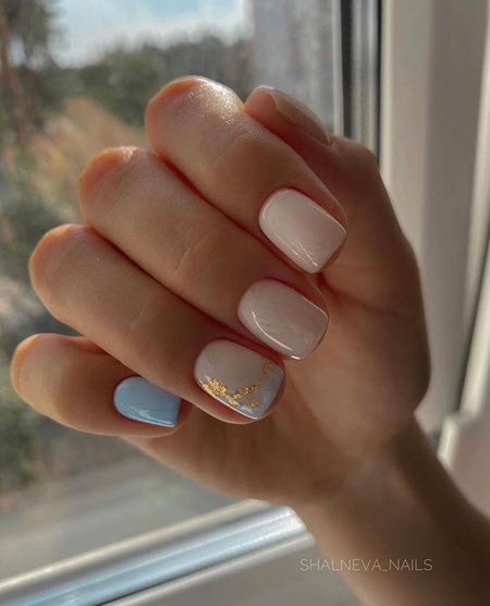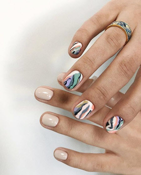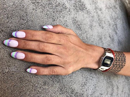 Es reicht aus, mehrere Farben auf verschiedene Nägel aufzutragen und Sie werden diese Saison definitiv im Trend liegen. Dieses Design sieht einfach, aber gleichzeitig erstaunlich aus. Drei Farben sind ein großartiger Ausgangspunkt für eine Verlaufsmaniküre 2024.Außerdem verhindert die Auswahl von Farben auf einer Seite des Farbkreises, dass Ihr Aussehen nicht übereinstimmt.