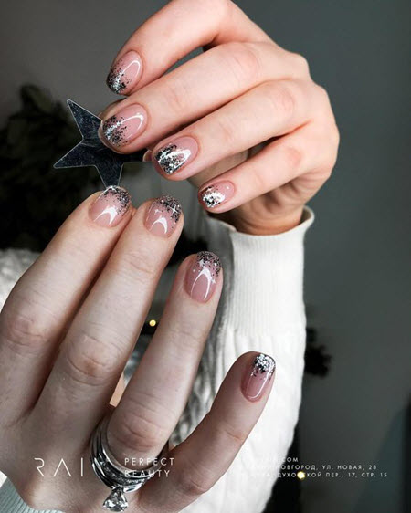 Schöne Glitzermaniküre für kurze und lange Nägel