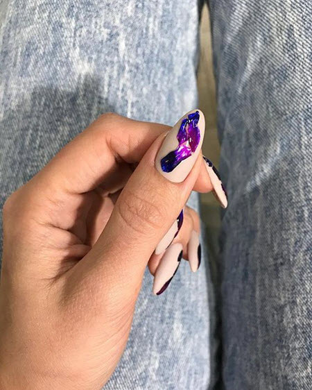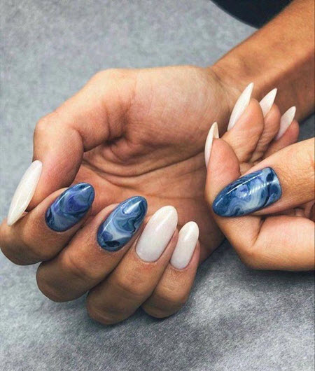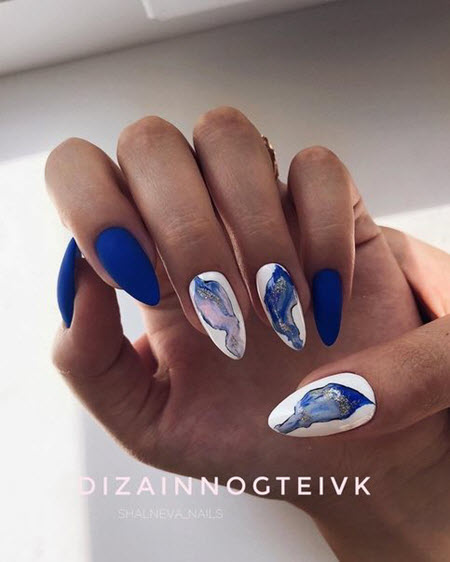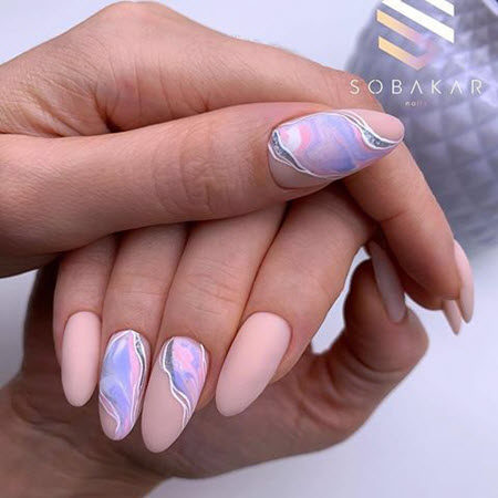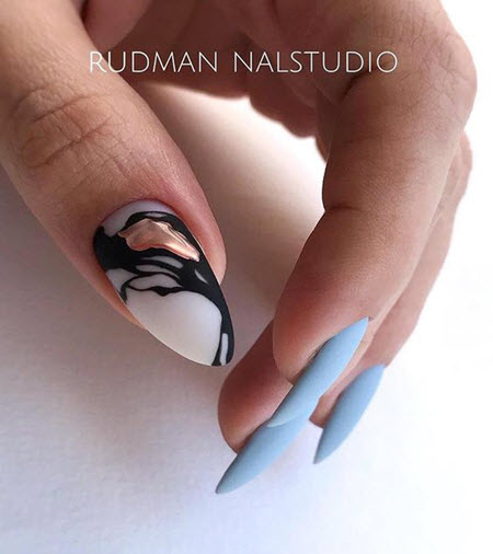 Originalbeizen sind jedes Mal ein einzigartiges Finish, denn selbst das gleiche Muster sieht anders aus. Ein solches Design wird zu Hause schwer zu erreichen sein, die Wirkung einer volumetrischen Trübung ist nicht so einfach. Wir laden Sie ein, sich mit Hilfe von Gelpolitur von den schönsten und modischsten Gestaltungsideen mit Flecken auf kurzen und langen Nägeln inspirieren zu lassen: