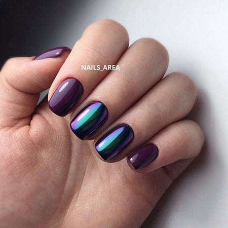 Rub-in ist im Wesentlichen ein Pigment, in Form von Acrylpulver, es kann spiegelnd, perlmutt und sogar schillernd sein. Sie machen eine normale Maniküre mit Gelpolitur, aber über der klebrigen Schicht mit einem Top eine Reibe auftragen und sozusagen mit einem Schwamm reiben. Das Reiben kann auf allen Ringelblumen erfolgen oder eine oder zwei in Form eines Akzents dekorieren.