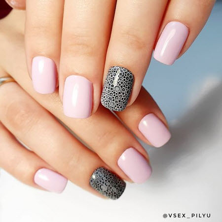 Mit einer speziellen Gelfarbe (Spinnennetz) lassen sich interessante Linien und lustige Muster auf den Nägeln erzeugen. Diese Farbe hat eine zähflüssige Konsistenz, verteilt sich also überhaupt nicht auf den Nägeln und garantiert klare Linien beim Zeichnen. Gelfarbe kann in einer Vielzahl von Farben sein, aber am häufigsten werden Grundfarben gewählt, es ist einfacher, mit ihnen zu arbeiten und sie zu kombinieren, dies sind Schwarz-, Weiß-, Gold- und Silberfarben. Das Spinnennetz-Nageldesign sieht sowohl in hellen Pastellfarben als auch in dunklen gesättigten Farben gut aus, eine solche Maniküre kann für jeden Tag und für einen Urlaub durchgeführt werden.