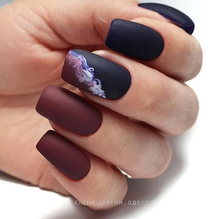 Es ist wichtig, sich daran zu erinnern, dass die matte Maniküre mehr als gewöhnlich schmutzig wird. Daher ist es besser, bei der Hausarbeit Handschuhe zu tragen. Und bevor Sie sich für ein mattes Design entscheiden, vergewissern Sie sich, dass Ihre Nagelplatte in gutem Zustand ist, denn eine matte Oberseite hebt alle Unregelmäßigkeiten und Unvollkommenheiten hervor.