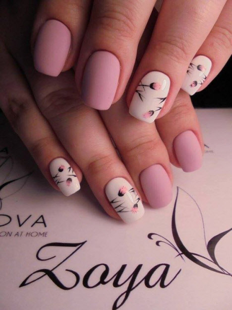 Matte Maniküre. Trotz der Tatsache, dass eine matte Maniküre weniger getragen wird als eine glänzende, wählen Mädchen sie zumindest, weil sie auf Nägeln jeder Länge fantastisch aussieht.