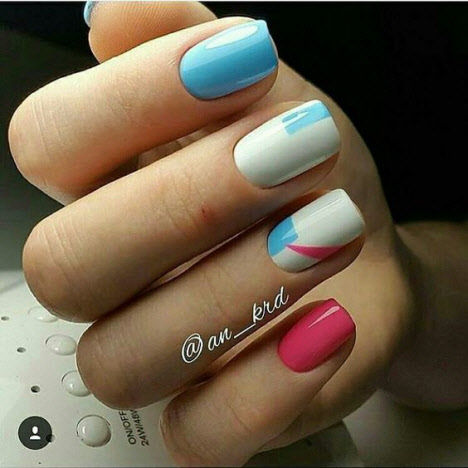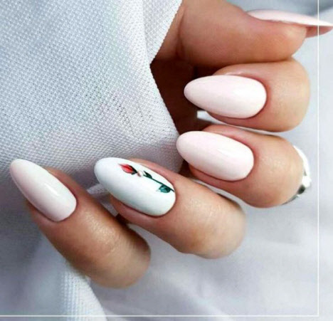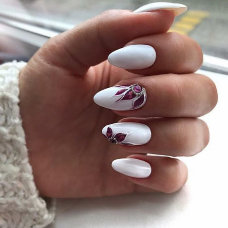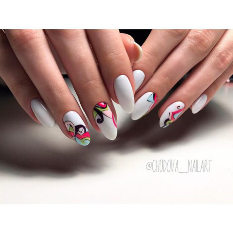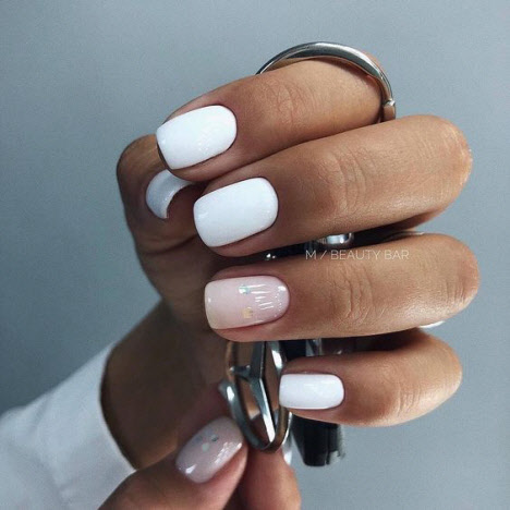 Alle Türen sind offen für weißen Lack. Weißer Lack sieht auf gepflegten, gebräunten Händen einfach großartig aus, Sie können ihn sowohl für die Maniküre auf kurzen als auch auf langen Nägeln bedenkenlos wählen. Sie können eine solide weiße Maniküre machen oder einen anderen hellen Akzent hinzufügen, zum Beispiel tiefschwarz, rot, blau, gelb, karminrot.