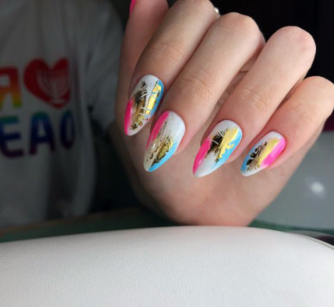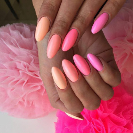 Mädchen, die keine Angst haben, die Aufmerksamkeit anderer auf sich zu ziehen, können sicher eingängige und helle Ideen der Nagelkunst wählen. Und das geht am einfachsten mit Hilfe verschiedener Neontöne in den hellsten Farben. Auf der gebräunten Haut der Hände sieht eine solche Maniküre noch heller aus, sodass Sie sie im Urlaub sicher machen können.