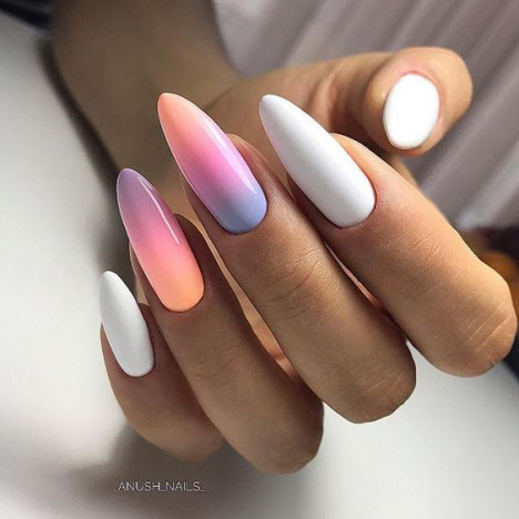 Der Sommer ist die perfekte Zeit für interessante und schöne Nageldesigns. Und moderne Nageldesign-Techniken ermöglichen es Ihnen, sehr realistische Nageldesigns zu erstellen. Stilvolle Designs können mit Pastellfarben oder helleren Farbtönen erstellt werden.