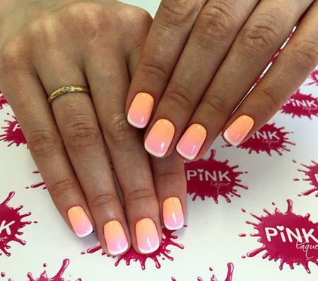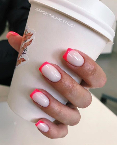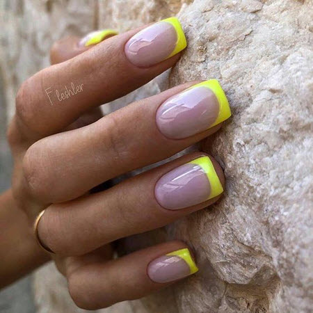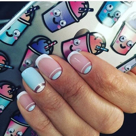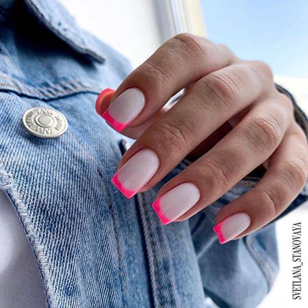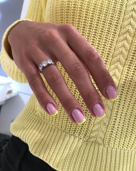Es gibt nichts Besseres für Ihre perfekte Sommermaniküre, als Ihrer trendigen French-Maniküre üppige Sonnentöne zu verleihen. Helles Pink oder gedecktes Blau, Pfirsich und Pastellgelb stehen in dieser Saison ganz oben.
