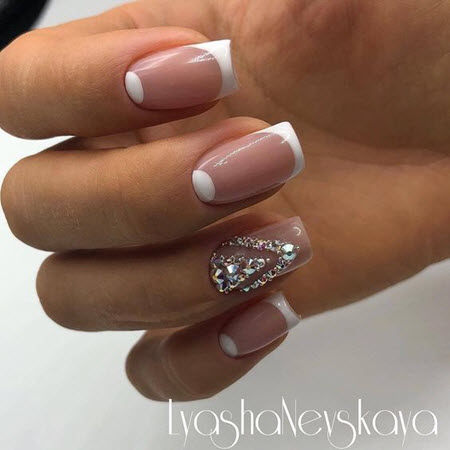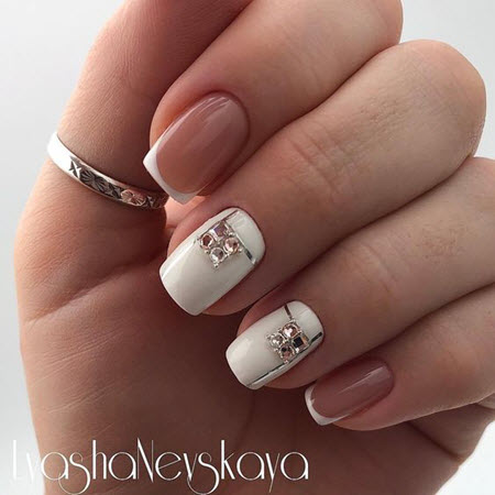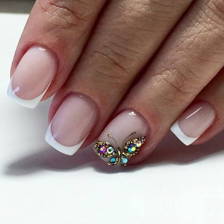 French Manicure selbst sieht sehr schön aus und erfordert in den meisten Fällen keine zusätzliche Dekoration. Trotzdem sollte man die Popularität verschiedener aktueller Designs nicht leugnen, die die Maniküre immer ergänzen und stilvoller, origineller und modischer machen.