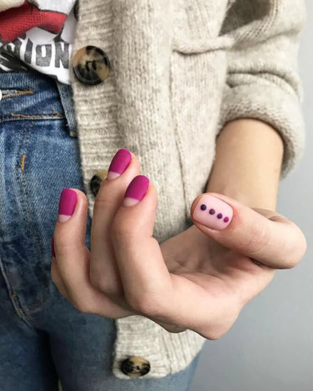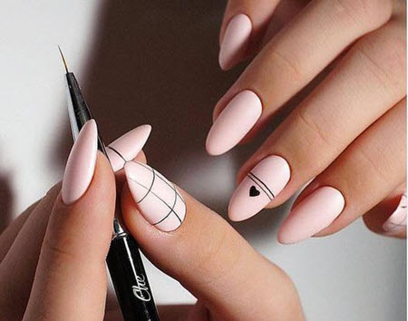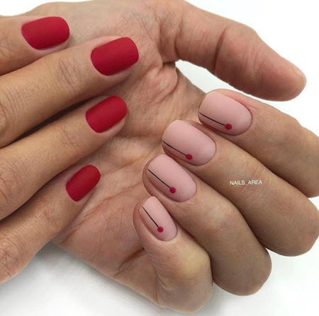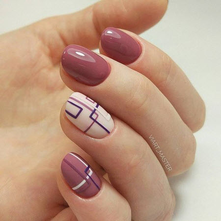Minimalismus und Geometrie sind die perfekte Kombination in der Nailart; diese Art der Maniküre wird von vielen Frauen geliebt, die genug von aufdringlichen Nageldesigns mit vielen dekorativen Elementen haben. Die Muster sollten zart, klein und dem minimalistischen Stil entsprechen.