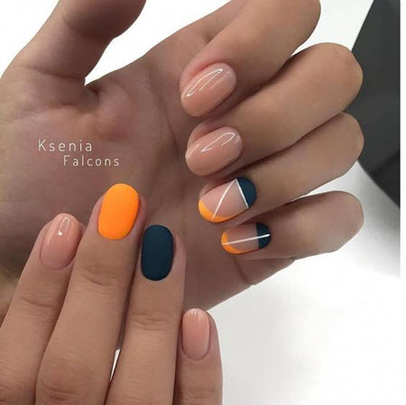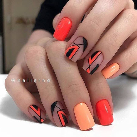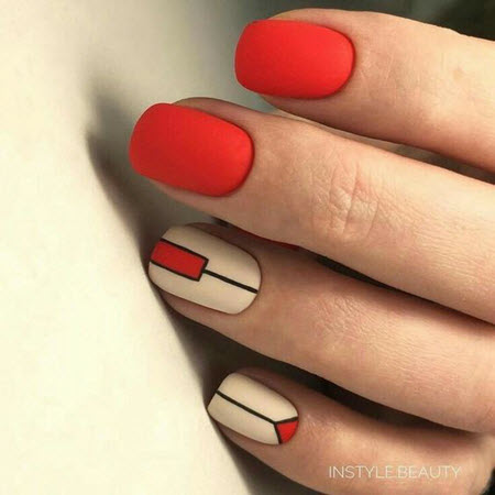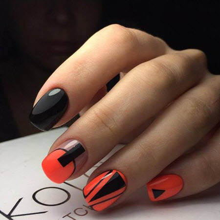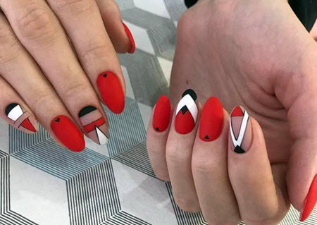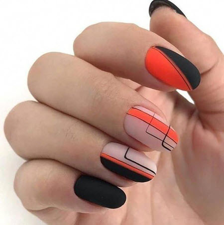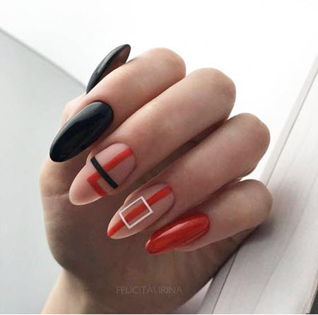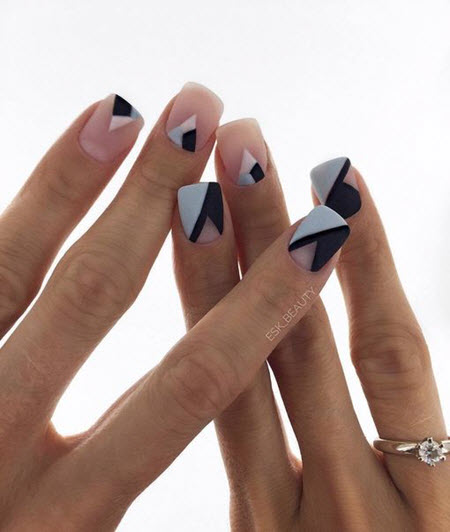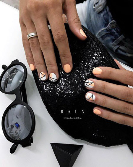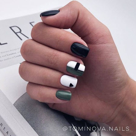 Welche Farben eignen sich für die geometrische Maniküre? Das ist natürlich alles, denn es hängt alles nur von Ihrer Vorstellungskraft und der gewünschten Wirkung ab.