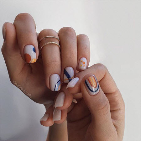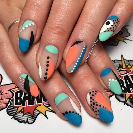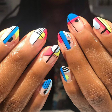 Ein Design, das die grauen Tage mit Sicherheit aufhellen wird, verdünnen Sie Ihre übliche Maniküre mit Farb- und Geometriemustern.