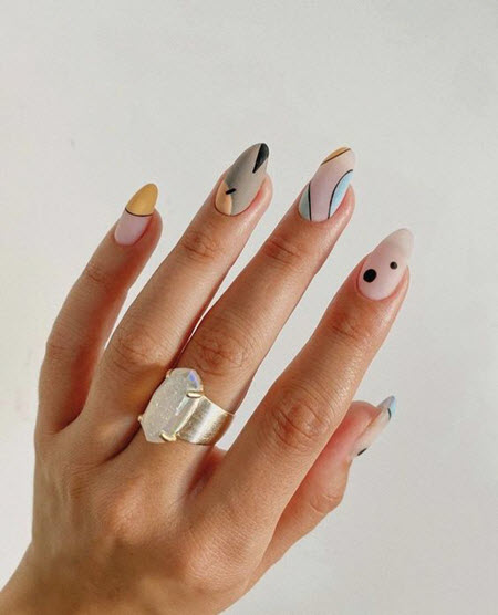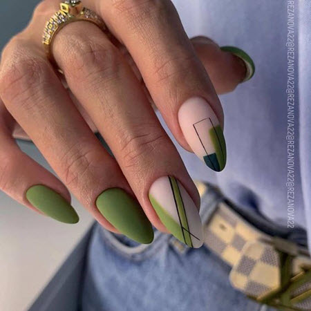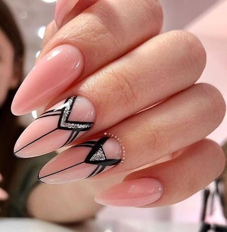 Geometriemaniküre für ovale und Mandelnägel 2024