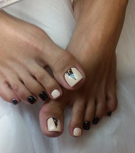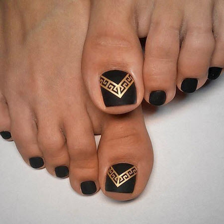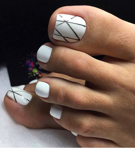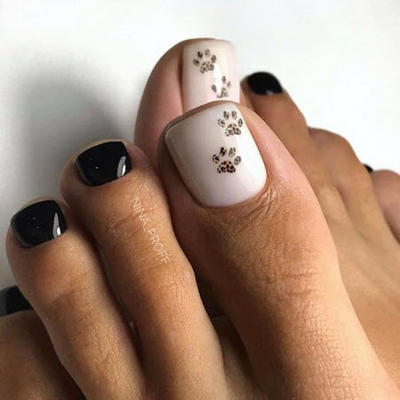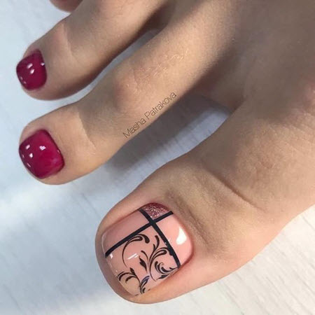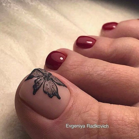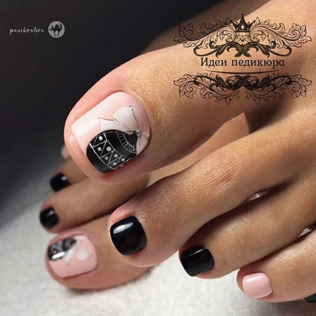 Das Zeichnen in einer Pediküre sollte lakonisch und zurückhaltend sein, denn grelle und komplexe Zeichnungen sehen für eine Pediküre lächerlich aus.