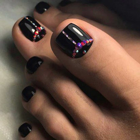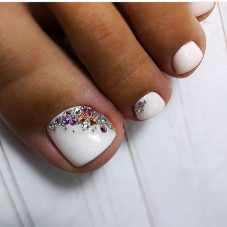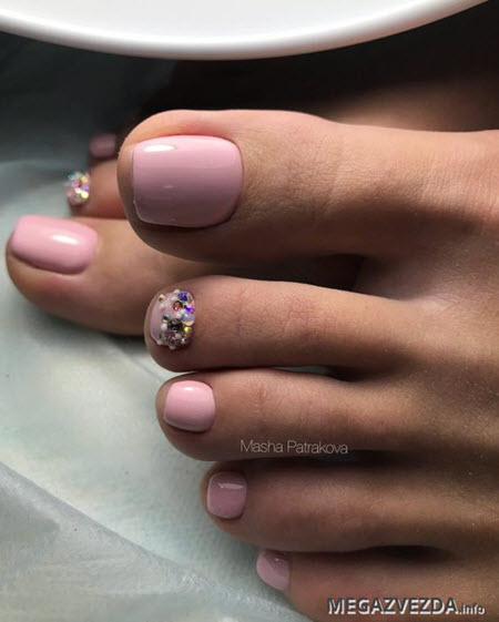 Mit einer Pediküre, die mit Steinen und Strasssteinen verziert ist, können Sie die Anmut und Gepflegtheit Ihrer Füße unterstreichen.