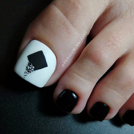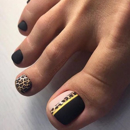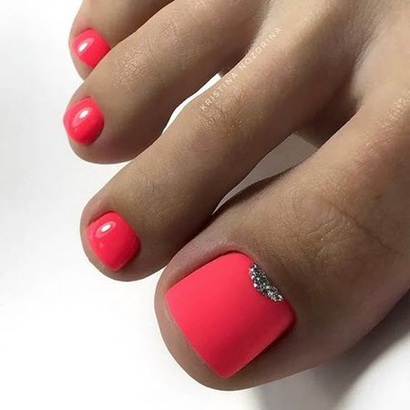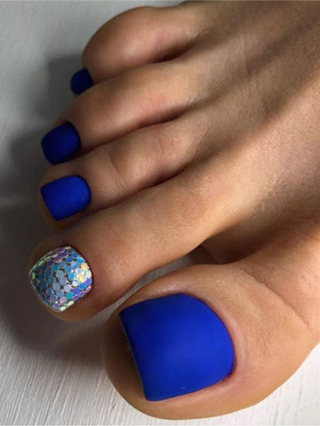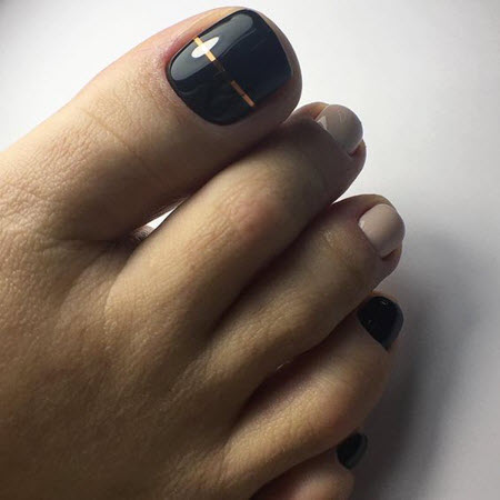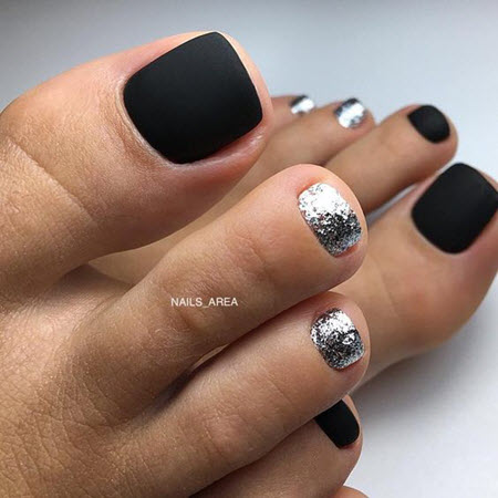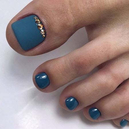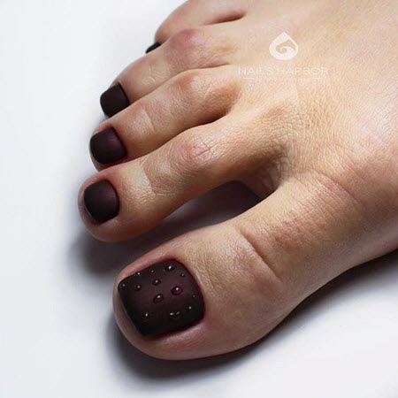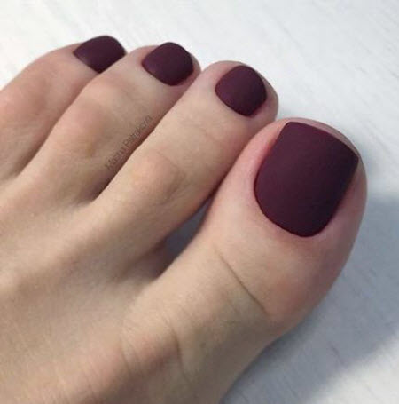 Die matte Oberseite verleiht den Nägeln einen besonderen Charme und Mysterium und macht die Nägel samtig und so attraktiv. In einer Pediküre können Sie auch ein glänzendes und mattes Finish kombinieren, zum Beispiel Ihren Daumen matt machen und den Rest glänzend machen.