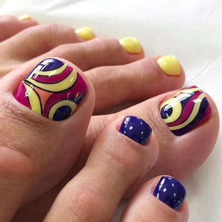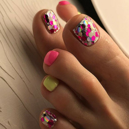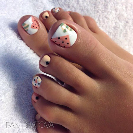 Im Sommer müssen Sie sich nicht darauf beschränken, mit möglichst vielen Farben zu experimentieren. Wählen Sie mehrere Farben für die Pediküre 2024 und lassen Sie Ihrer Fantasie freien Lauf. Lass die Fantasie ihr Ding machen.