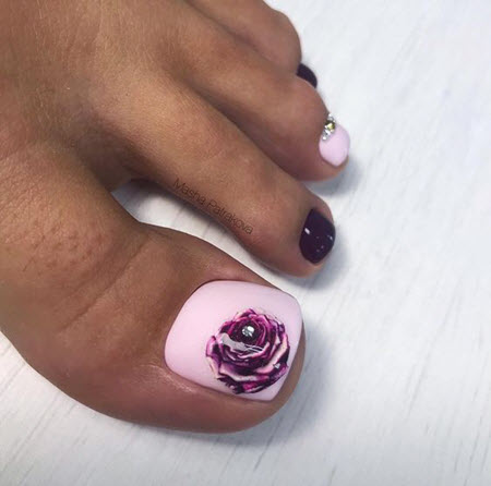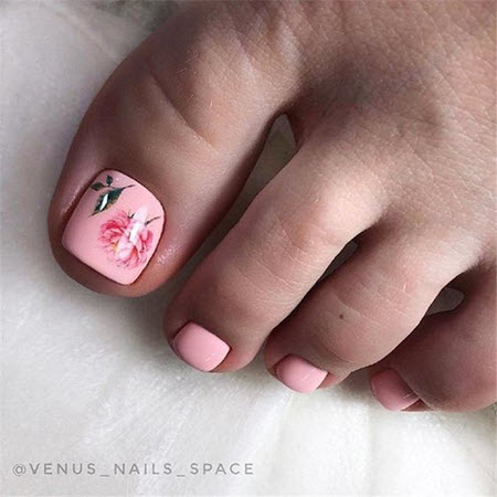 Blumenmuster im Pediküre-Design 2024 ist eine stilvolle und modische Lösung. Verwenden Sie das Daumenmuster und wählen Sie einen ähnlichen Ton für den Rest Ihrer Finger.
