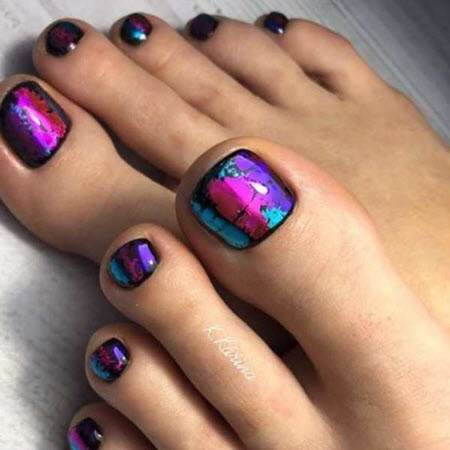 Die stilvolle und originelle Pediküre mit Folie sieht zu jeder Jahreszeit wunderschön an den Beinen aus und das ist der unbestrittene Trend in der Nagelkunst im Jahr 2024. Folien in den unterschiedlichsten Nuancen und Texturen können Ihre Füße in dieser Saison verschönern. Die Folie sieht sowohl in matt als auch in glänzend gut aus.