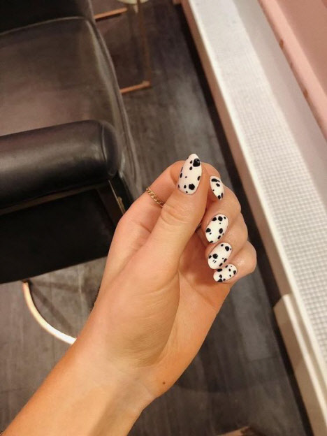 Tiere auf den Nägeln können sowohl über die gesamte Oberfläche der Nagelplatte als auch von der Seite asymmetrisch von einem Finger zum anderen fließend dargestellt werden usw. Sehen Sie sich das Foto unten an: