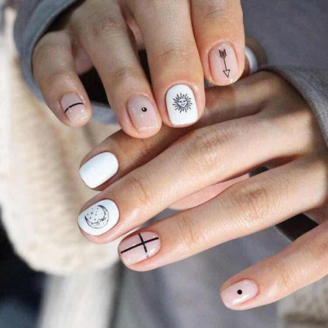 Ungewöhnliche Designs in der Maniküre für kurze Nägel