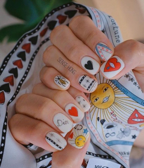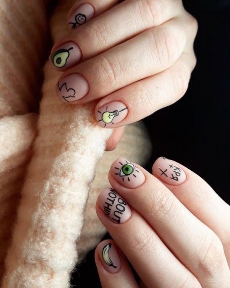 Wir haben für Sie die besten Designs für ungewöhnliche Maniküre für kurze Nägel zusammengestellt. Sie sind einfach und komplex - einzigartig und exzentrisch, wählen und speichern Sie die Optionen, die Sie mögen. Obwohl ein solches Design nur von einem erfahrenen Meister wiederholt werden kann.