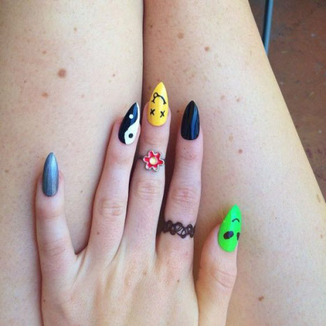 Ungewöhnliche Zeichnungen in der Maniküre für lange Nägel