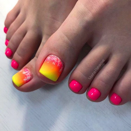 Im Sommer, wenn unsere Füße immer in Sichtweite sind, ist das Neon-Pediküre-Design die perfekte Lösung für die Saison 2024-2025. Eine helle Neon-Pediküre wird Sie definitiv aufmuntern und Sie nicht ohne die Aufmerksamkeit anderer lassen.