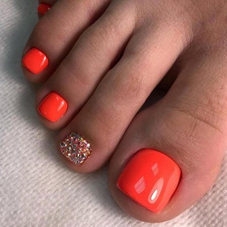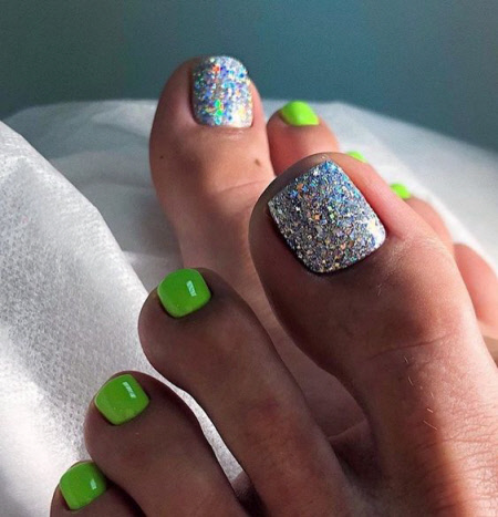 Foto einer modischen Neon-Pediküre 2024-2025