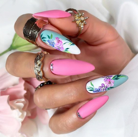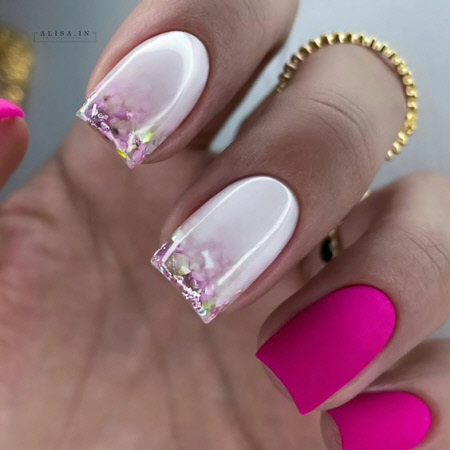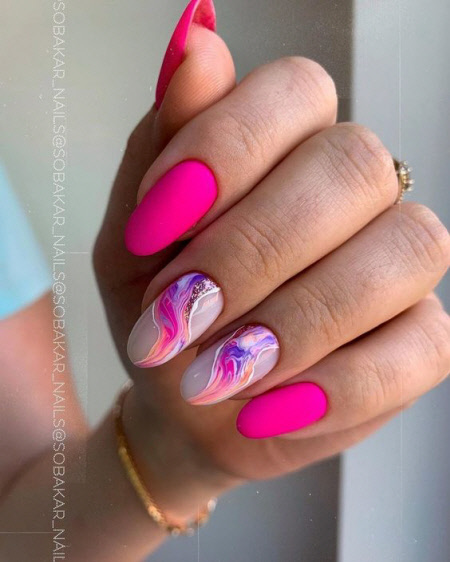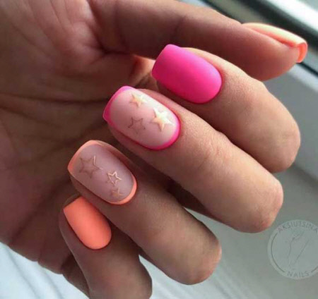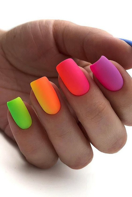 Diese Nägel sind perfekt für den Sommer, die matte Neon-Maniküre wird Ihre Nägel nicht unbemerkt lassen, mit diesem Design liegen Sie zweifellos im Trend.