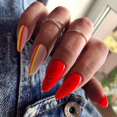 Hier finden Sie keine langweiligen oder langweiligen Nageldesigns, sondern nur helle Neon-Maniküre. Neonlackfarben sind leuchtend, stilvoll und perfekt für die Sommersaison und darüber hinaus. 2024-2025 sind solche Neonlackfarben im Trend: