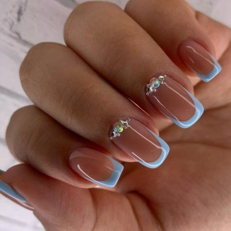 Und Strasssteine und Perlen und Glitzer und Funkeln werden Ihre helle Maniküre nicht verderben, wenn Sie sie in kleinen Mengen auftragen und die ursprüngliche Idee der Nagelkunst verkörpern, wie auf dem Foto: