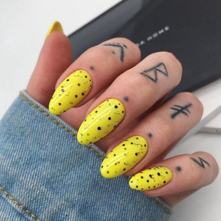 Trendige neue Lackfarben können auf Nägeln jeder Länge und Form getragen werden. Helle Maniküre für kurze und lange Nägel mit ovaler Mandelform liegt im Trend. Die Form eines weichen quadratischen, scharfen und eckigen Nagels sind jedoch auch in der Nailart vorhanden. Hier ist es, wie man sagt, Geschmackssache. Eine helle Maniküre für kurze Nägel wirkt zurückhaltender. Lange Nägel mit einem hellen Design werden immer trotzig aussehen.