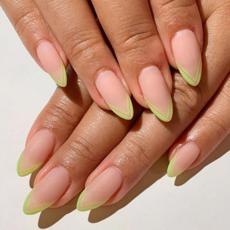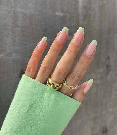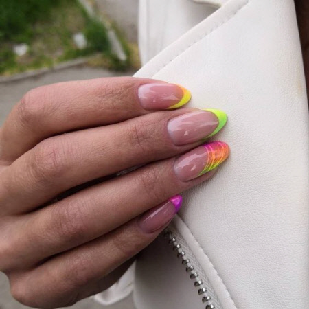 Der Sommer ist die Zeit, um von kühlen Nagelfarben und dunklen Jackendesigns zu helleren Farben zu wechseln. Entscheiden Sie sich also diesen Sommer für leuchtende Nagelfarben für Ihre French Manicure. Zum Beispiel wie rosa, gelb, orange, blau, lila. Neonfarben sind eine gute Wahl für die Sommersaison 2024.