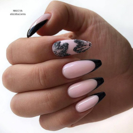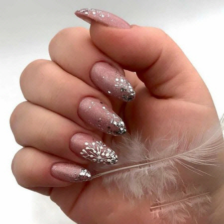 Wenn Sie glänzen und im Mittelpunkt stehen wollen, dann ist eine French Manicure mit Glitzer genau das Richtige! Die Kombination aus hellen Lacktönen mit einem Lichtspiel auf facettenreichen Pailletten sieht in dieser Saison sehr schön und stylisch aus. Mit einer solchen Maniküre werden Sie sowohl im Büro als auch auf einer Party im Jahr 2024 wunderschön aussehen. Gold- und Silberpailletten lassen sich besonders schön mit einer Jacke kombinieren.