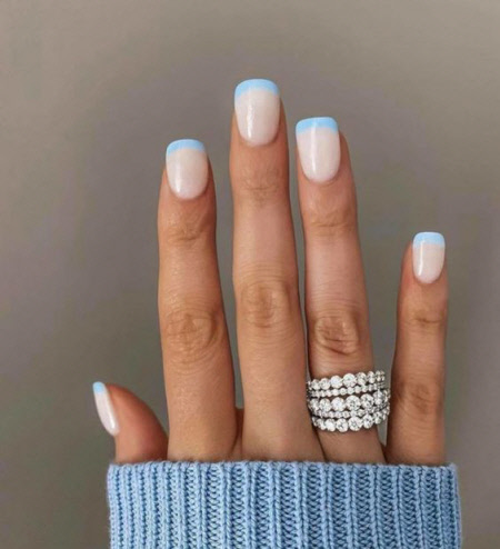 Die zarte blaue French Manicure schmückt Ihre Nägel zu jeder Jahreszeit, sieht aber im Frühling und Sommer besonders gut aus.