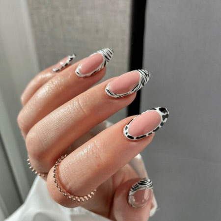 French 2024 ist ideal für lange Mandel- und ovale Nägel. Darüber hinaus sind lange Nägel mit französischer Basis in dieser Saison ein hervorragendes Feld für künstlerische Fantasien, Sie können die gewagtesten kreativen Ideen verkörpern.