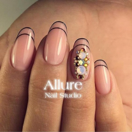 Elegante französische Maniküre mit Steinen: Foto 2024