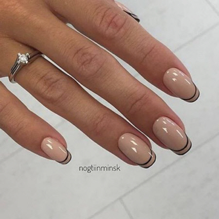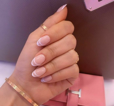 Dieses elegante zarte Nageldesign passt zu jedem Look und ist immer in Mode. Da French Manicure zweifarbig ist, hat sie normalerweise Farbtöne, die natürliche Nägel nachahmen, dh rosa Nagelbetten und weiße Spitzen. Dieses Design lässt sie zu jeder Jahreszeit zart, zeitlos und schick aussehen. Der wichtigste Teil einer French Manicure sind die Nagelspitzen, die perfekt aussehen sollen.