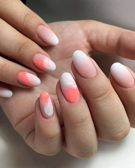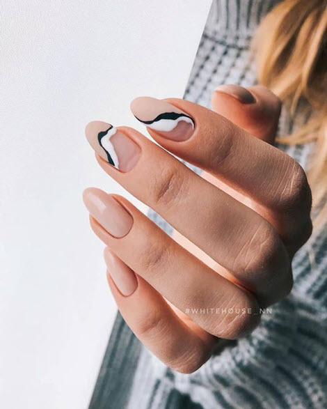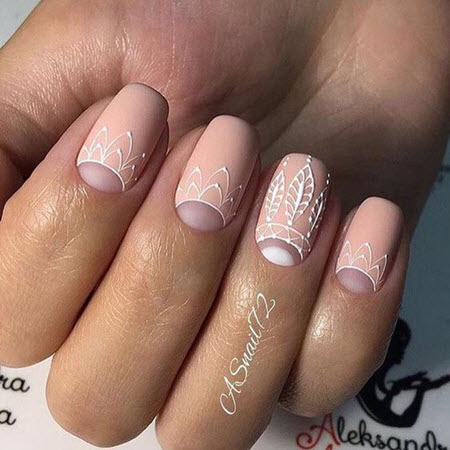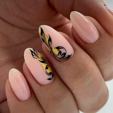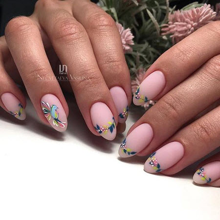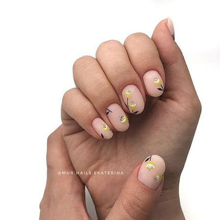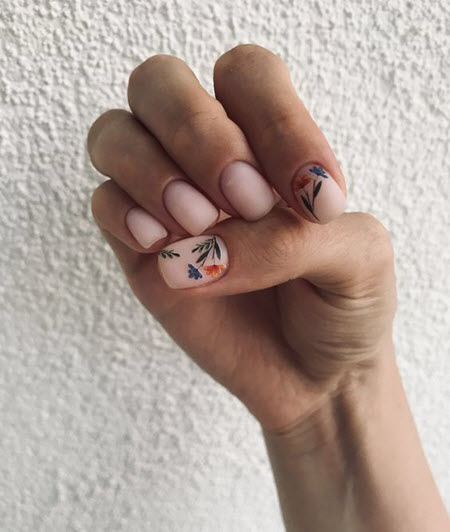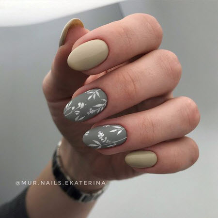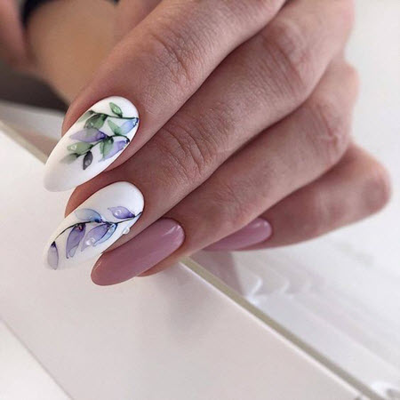 Trotz der Tatsache, dass florale Motive schon seit geraumer Zeit relevant sind, präsentieren Nagelkünstler jedes Jahr neue interessante Lösungen und Kombinationen. Ein Nude-Finish kombiniert mit einem Pastellakzent auf mehreren Nägeln und einem floralen Muster ist beispielsweise der Inbegriff von Zärtlichkeit und Romantik. Eine solche Maniküre wird trotz ihrer Eleganz nie unbemerkt bleiben.