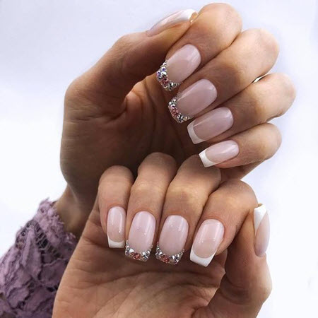 Zarte Maniküre mit Steinen und Strasssteinen: Ideen 2024