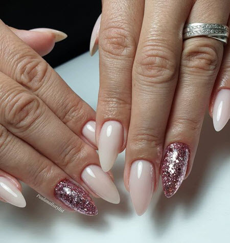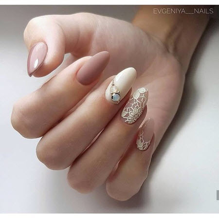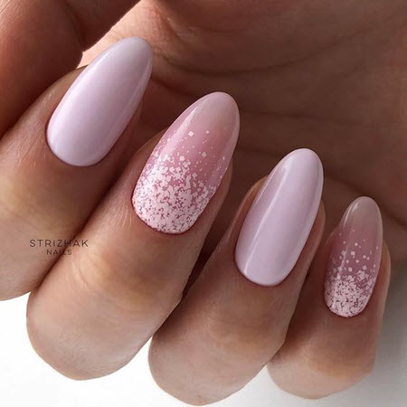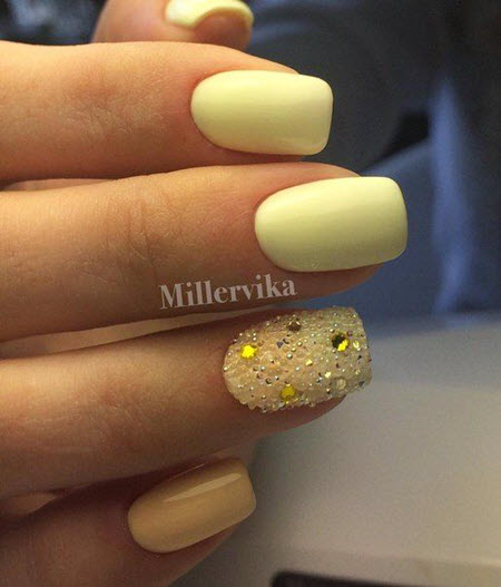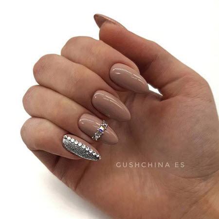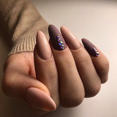 Modische, zarte, moderne Lacktöne werden in dieser Saison perfekt mit gepflegten funkelnden Akzenten in Form von Strass- und Steinchen kombiniert. Es ist ratsam, glänzende Elemente auf ein oder zwei Akzentfinger zu legen, alle Nägel mit separaten Teilen zu dekorieren und Muster aus dem Dekor auszulegen. Die Hauptregel ist, dieses Dekor in Maßen zu verwenden und die Maniküre nicht zu überladen, da sonst die obsessive Ausstrahlung die anfängliche Zärtlichkeit überschattet.