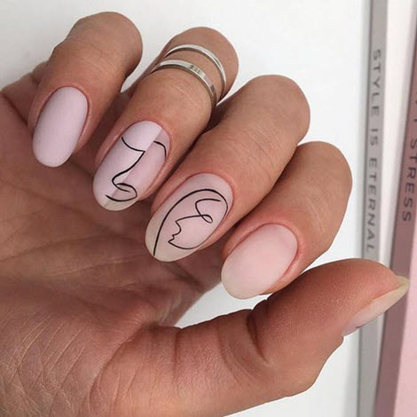 Ein mattes Finish für ein zartes Design ist die perfekte Ergänzung zur Maniküre. Pfirsich, Beige, Grau, Pink und Kaffee mit Milch sind die beliebtesten Nuancen für eine solche Maniküre in der Saison 2024. Sie lassen sich wunderbar miteinander kombinieren und durch tiefere oder hellere Striche ergänzen. Außerdem passt das matte Finish gut zu einer Vielzahl von Hochglanzdekoren und sieht im Jahr 2024 mit Miniaturdesigns großartig aus.