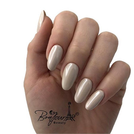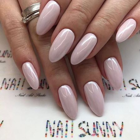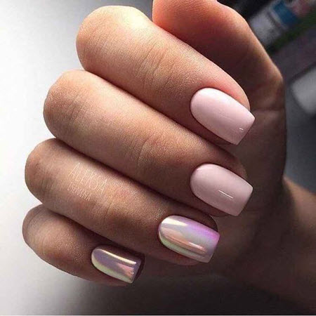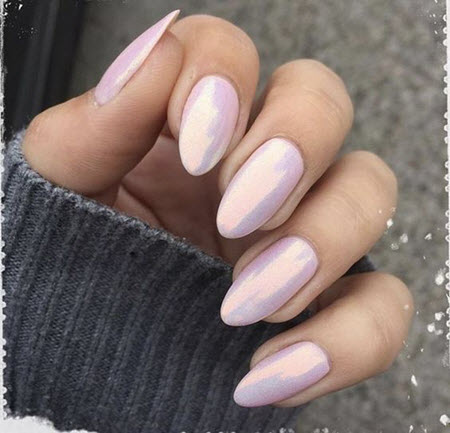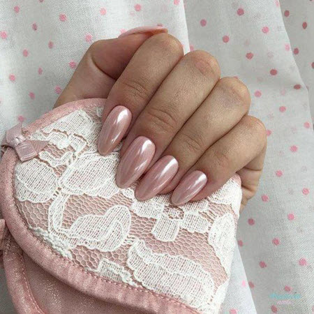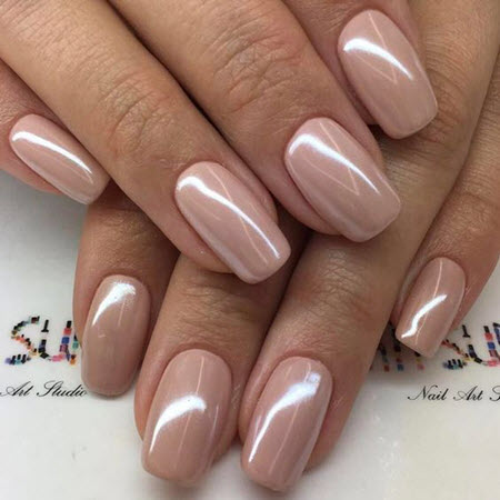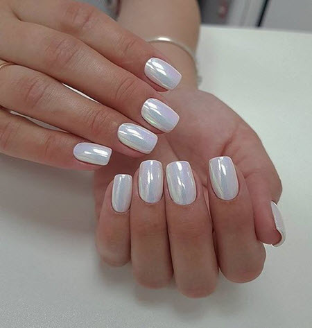 Pearl Maniküre sieht in weißen Farben, blassrosa, blau, beige, lila besonders schön aus.