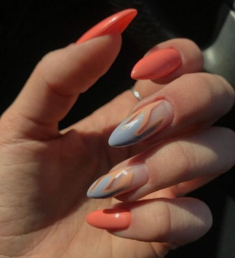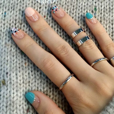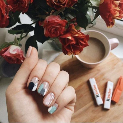 Die Hauptfarben einer Nude-Maniküre sind: Beige, Milchig, Kaffee mit Milch, Hellrosa, Pfirsich, Puder, Lavendel, Hellgrau. Frischere sind Minze, Türkis, Blau, Lila, Weichkorallen.