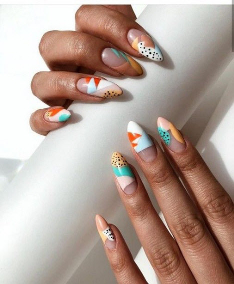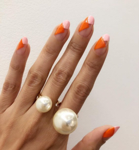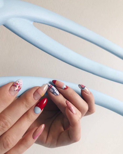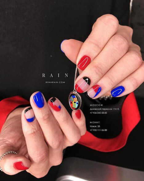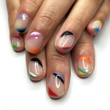 Wenn Sie etwas Helles und Anderes ausprobieren möchten, versuchen Sie es mit einer Negativ-Space-Maniküre in hellen Farben. Rot, Gelb, Blau, Himbeere, Zitrone ... und viele andere Farben sind genau richtig, um eine solche Maniküre zu kreieren. Wählen Sie eine Vielzahl von Mustern und Designs, sehen Sie sich das Foto unten zur Inspiration an.