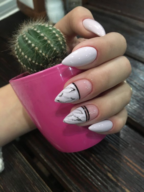 Die Negativraum-Maniküre passt gut zu einer Vielzahl von Nageldesigns, von den einfachsten bis zu den komplexesten. Für jede Ringelblume kann ein negativer Raum verwendet werden, oder Sie können sich auf eine oder zwei konzentrieren. Es ist sehr wichtig, die Dissonanz zwischen lackiertem und transparentem Teil zu beachten, damit die Umrandung mit klaren Konturen sichtbar wird!