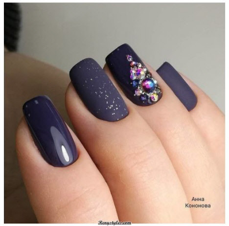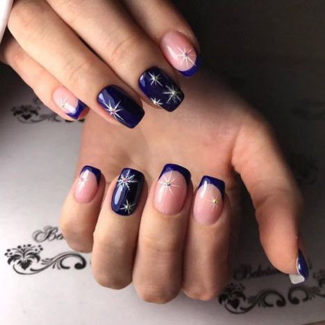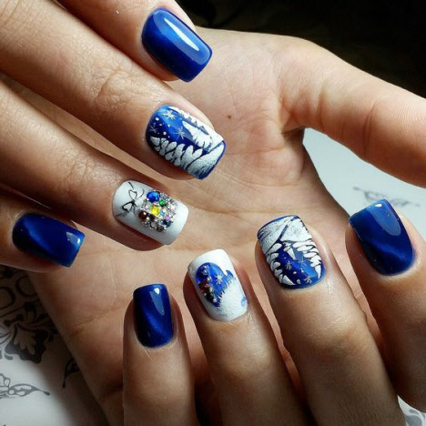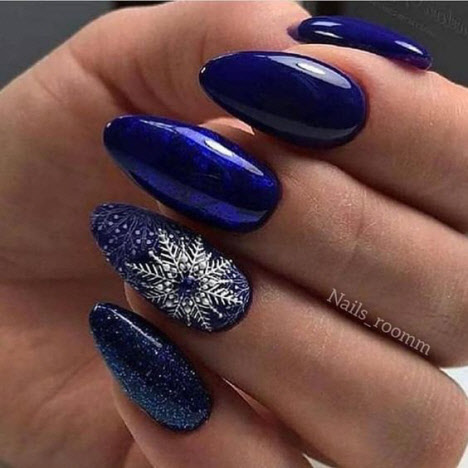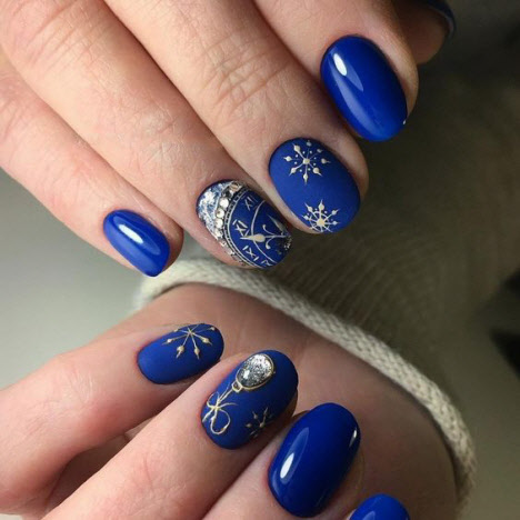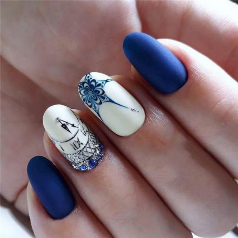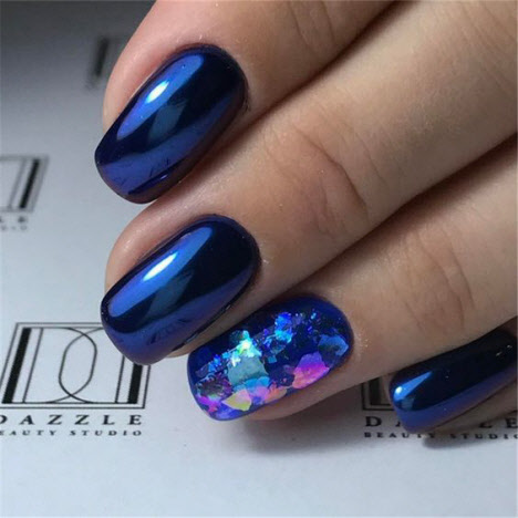 Die satte blaue Farbe in der Maniküre wird von jedem geschätzt, sie ergänzt das Bild sehr exquisit und sieht attraktiv aus, egal für welches Outfit Sie sich entscheiden. Diese Farbe erfordert keine unnötigen Rahmen oder Muster, es reicht aus, sich auf einen oder zwei Nägel zu konzentrieren.