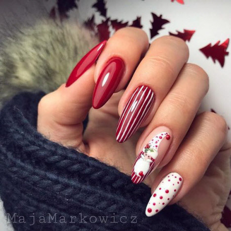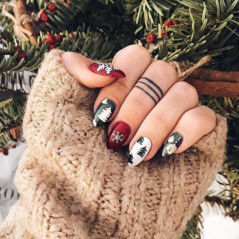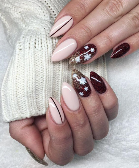 Wir haben eine Auswahl an Maniküre mit weihnachtlichen Elementen in Form von Weihnachtsbäumen, Zapfen, Schneeflocken, Schneemännern, Hirschen, Weihnachtsbonbons und vielen, vielen Glitzern vorbereitet. Aber auch für Liebhaber des Minimalismus haben wir interessante und schöne Ideen für die Erstellung einer Neujahrsmaniküre gefunden. In diesem Artikel finden Sie also eine Maniküre für jeden Geschmack!